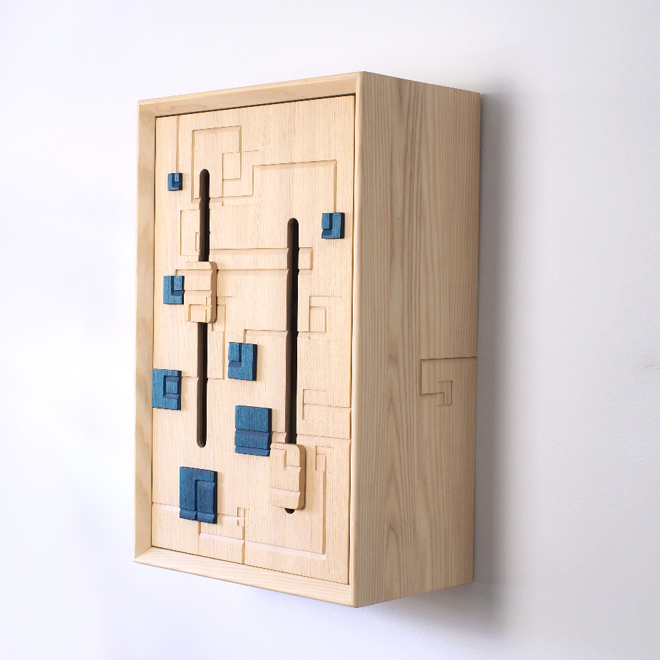 Juliette Huneau, artiste ébéniste d’origine française établie au Canada, puise dans son double parcours culturel un équilibre entre savoir-faire traditionnel et approche contemporaine. Formée en France (CAP, BMA) puis à l’École d’ébénisterie d’art de Montréal (DEC), elle s’appuie sur une solide base technique nourrie par une sensibilité poétique et un grand souci du détail, donnant vie à des créations mêlant esthétique, fonctionnalité et réflexion conceptuelle. Alliant techniques artisanales et innovations mécaniques, elle conçoit des œuvres de mobilier énigmatiques qui dépassent leur simple fonction utilitaire. Inspirées par les cabinets secrets et les univers interactifs, ses pièces, pensées comme des puzzles, invitent l’utilisateur à interagir, à explorer et à révéler des secrets cachés. Cette approche ludique et narrative met en scène un dialogue subtil entre décor, geste et imagination. Cette philosophie se prolonge dans son travail sur mesure, où chaque projet s’enrichit de l’histoire et des inspirations de ses clients. Le tressage à la corde danoise, minutieux et répétitif, ajoute une dimension tactile et méditative, incitant à ralentir et à savourer l’instant. Ainsi, Juliette Huneau façonne des pièces uniques, profondément humaines, qui invitent à la contemplation, à l’exploration et à la réappropriation du temps.
