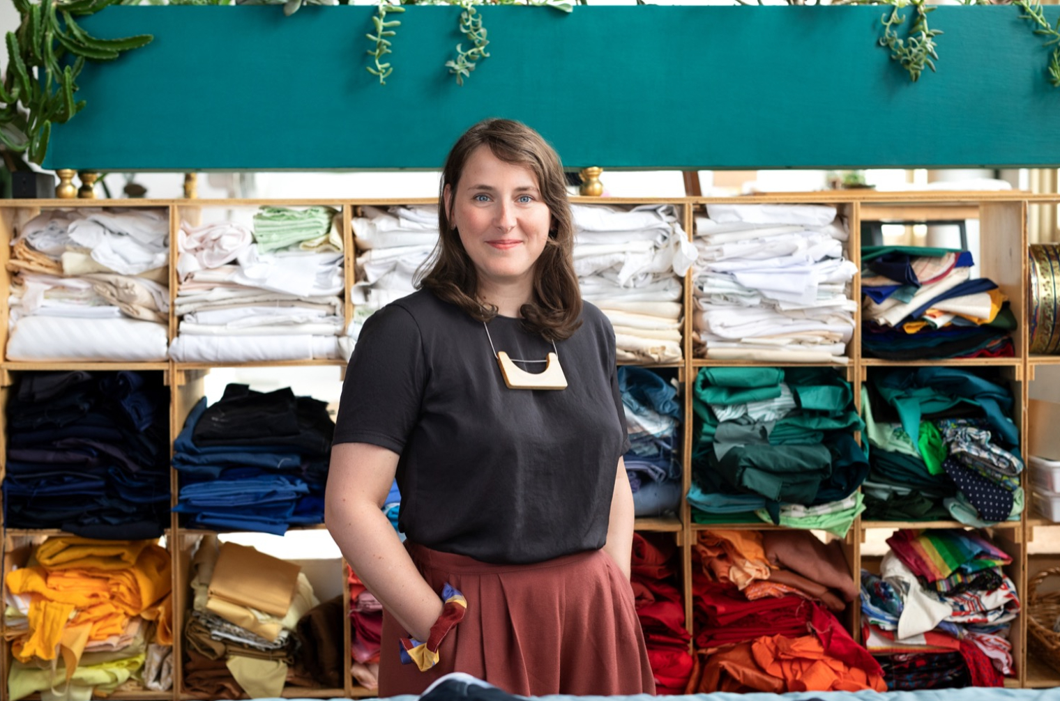 Couvertures de lit et accessoires en courtepointe, à partir de fibres surcyclées de coton, lin, laine et polyester. Les pièces sont réalisées en mini séries ou pièces uniques.