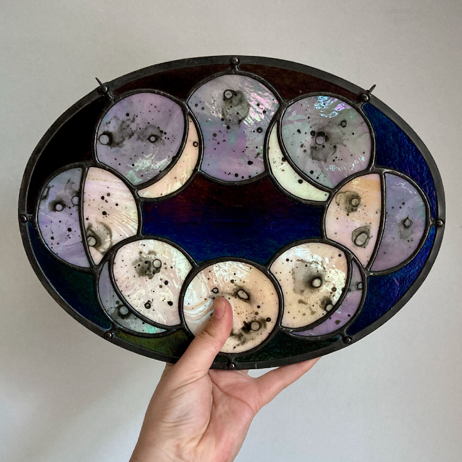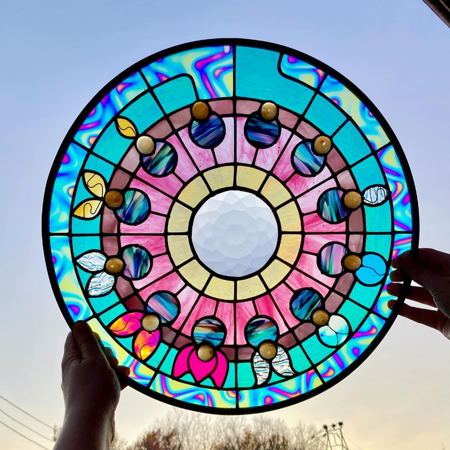 Isabelle Raymond est designer de métier mais elle utilise maintenant son savoir-faire et sa créativité pour créer des vitraux modernes. Elle a transitionné de sa carrière en design événementiel vers le vitrail à temps plein à l’automne 2020. Elle vends ses créations en ligne via son site internet et ses média sociaux ainsi qu’en personne quelques fois par année à l’occasion de marchés artisans. Elle restaure des vitraux sur demande et fabrique également des pièces sur mesure. Elle enseigne le vitrail au ruban de cuivre aux Affûtés (Petite-Italie puis Mile-X) depuis l’automne 2022 et elle a également enseigné au Studio du Verre dans le Vieux-Montréal, de janvier 2022 à juillet 2025.