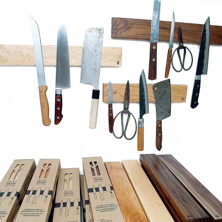 BEAU GRAIN est une entreprise de design et fabrication d’objects en bois pour la cuisine. Après plusieurs années passées à planter des arbres j’ai naturellement choisi le bois comme matériau pour mes créations. C’est un matériau chaleureux, intemporel et renouvelable qui est agréable à travailler, toucher et utiliser. BEAU GRAIN a commencé humblement. Avec un outillage minimal, j’ai fabriqué mes premières planches à découper et portes-couteaux. J’ai fait des erreurs et appris. Avec entêtement, je me suis instruit et j’ai investi toutes mes ressources sur le développement de mon entreprise . J’ai acquis de meilleurs outils et j’ai aménagé un atelier efficace. À ce jour je continue de développer des designs novateurs qui se démarquent pour satisfaire ceux, qui comme moi, apprécient le travail bien fait. Je crois que mes produits, par leurs qualités de construction et de design offre une belle alternative à des objets jetables et vide de sens. Un tel objet, beau et pratique, crée une connection avec l’utilisateur. En retour, il en prendra soin. La beauté est donc intimement liée à la durabilité. La ligne de produits BEAU GRAIN est toujours en évolution. À travers une utilisation responsable de la matière et des procédés de fabrication efficaces, je vise à offrir des produits de qualité et de rendre accessible le design. Je suis excité par le défi de répondre à une demande toujours grandissante pour les produits BEAU GRAIN.