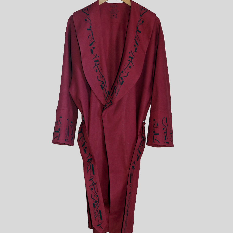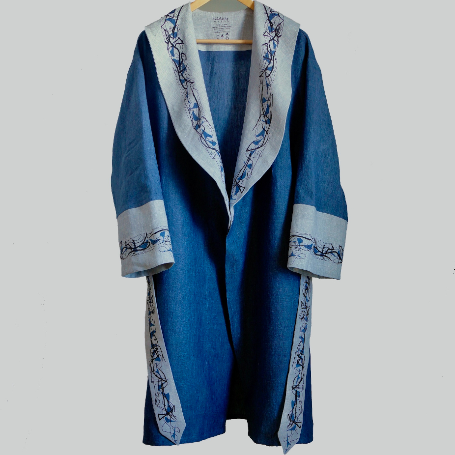 Design, impression et confection de peignoirs en lin et coton.