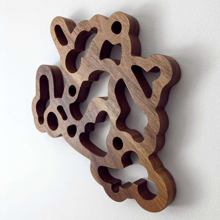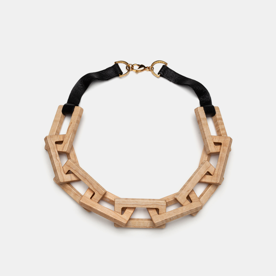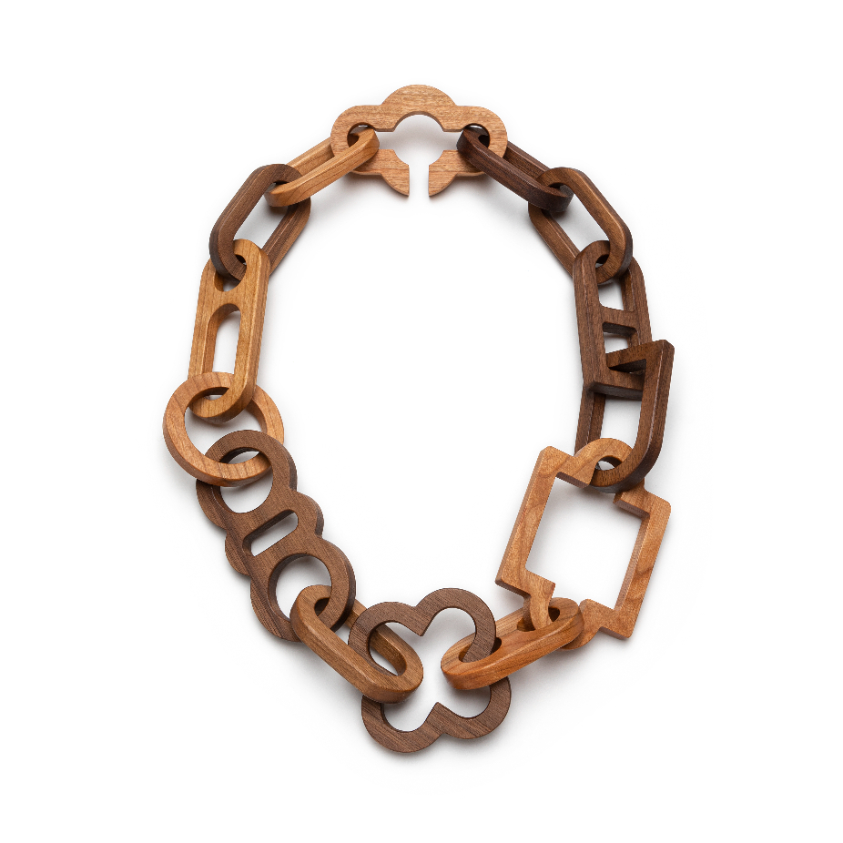 Soutenu par le Conseil des arts du Québec, son travail a fait l’objet de nombreuses expositions au Canada et à l’étranger, notamment à la NYC Jewelry Week (2022, 2023), à Frame Munich (2023) et à la Biennale Révélations à Paris (2023) en collaboration avec la Galerie montréalaise Noel Guyomarc’h, mais également au Museum of Arts and Design de New York (2022) et à la galerie Tincal Lab de Porto, au Portugal (2021). Son travail voyage actuellement en Finlande pour être exposé au Finnish Forest Museum Lusto de Punkaharju (2024) ainsi qu’au Musée d’art de Oulu (2025). Elle est récipiendaire du Prix Jean-Cartier pour la relève (2018) décerné par le Conseil des métiers d’art du Québec et était récemment finaliste pour le Prix François-Houdé (2023) offert par la Ville de Montréal. Ses recherches actuelles portent sur les assemblages géométriques et leur potentiel à illustrer des thèmes sensibles de manière évocatrice et poétique. À partir d’une étude des formes élémentaires, elle développe un lexique visuel lui permettant d’approfondir des thématiques de l’expérience humaine. Elle s’intéresse particulièrement aux dynamiques relationnelles et à la nature complexe des liens communs. Guidée par une esthétique de l’équilibre, elle manie la ligne avec sensibilité pour en construire des métaphores géométriques qui traitent de connexion, d’appartenance, d’héritage et de transformation.